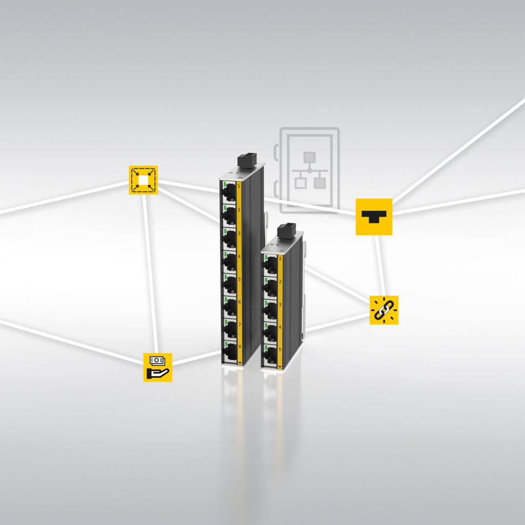 Mit der TNIC-Serie erweitert Turck sein Portfolio um Unmanaged Switche mit kleinstmöglichen Gehäuseabmessungen und robustem Vollmetallgehäuse. Diese Eigenschaften sollen effiziente und kostensparende Netzwerklösungen durch bestmögliche Raumausnutzung im Schaltschrank ermöglichen. Ein weiter Spannungsbereich von 6 bis 36VDC erlaubt eine flexible Stromversorgung. Ihr großer Arbeitstemperaturbereich zwischen -40 und +70°C garantiert einen zuverlässigen Betrieb auch in Schaltschränken in exponierten Lagen. Die Geräte in Schutzart IP30 stehen mit 5, 8 oder 16 Ports für Fast Ethernet sowie fünf und acht Ports für GBit-Ethernet zur Verfügung. Die neue TNIC-Serie löst die bisherige SE20-Serie ab.